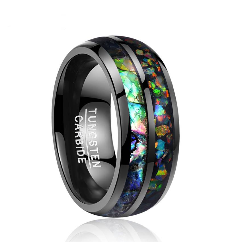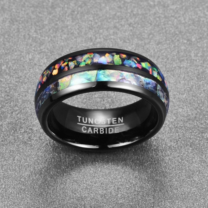 This versatile ring makes a handsome addition to both casual and business attire. Inlaid with crushed opal and abalone shell for a glamorous sparkle. Handmade by a skilled craftsperson, the piece has a carefully refined look that mass-produced items simply can't replicate. The tungsten material is strong and durable, so it won't bend or lose its shape over time. This stylish round cut adds sophistication to complete your timeless look.