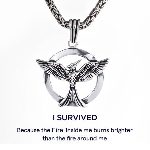 S925 The Fire Inside Me Burns Brighter Than The Fire Around Me Circle Phoenix Necklace For Men